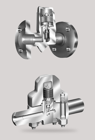 - Descarga de condensado subenfriado con regulación termostática por bimetal.